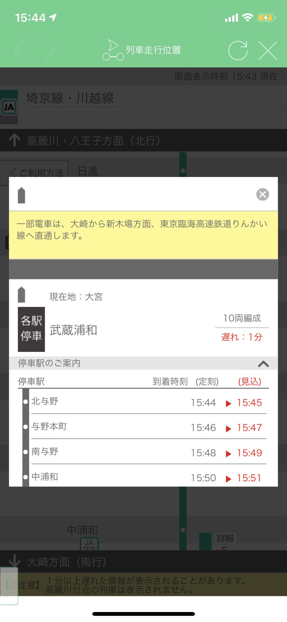 Jr東日本 3月15日の運行情報 7時3分更新 戸田市に住むと楽しいな