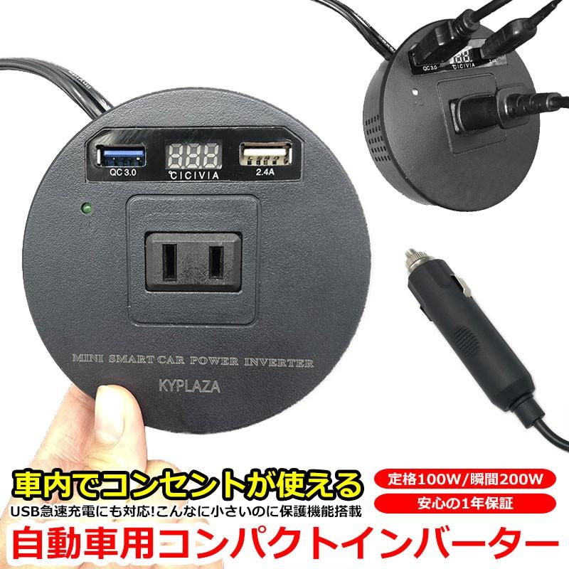 車用 インバーター 車載 12v 100v シガーソケット シガー から Ac電源 インバータ Usb電源 Dc12v 100w コンセント 保護機能 充電器 車載用品 車内 急速充電 Kyplaza Payapayモール店 通販 Paypayモール