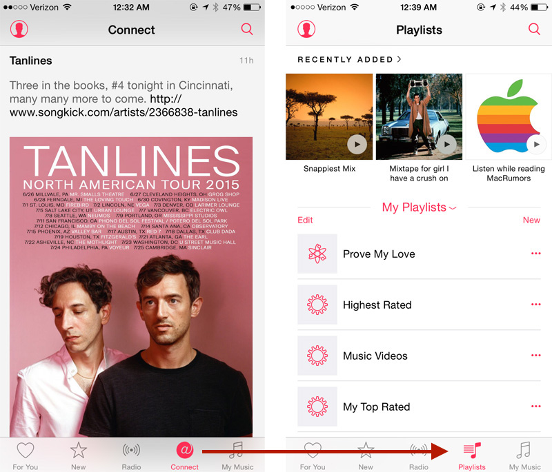 Replace The Apple Connect Tab With A Playlists Tab In Apple Music Macrumors