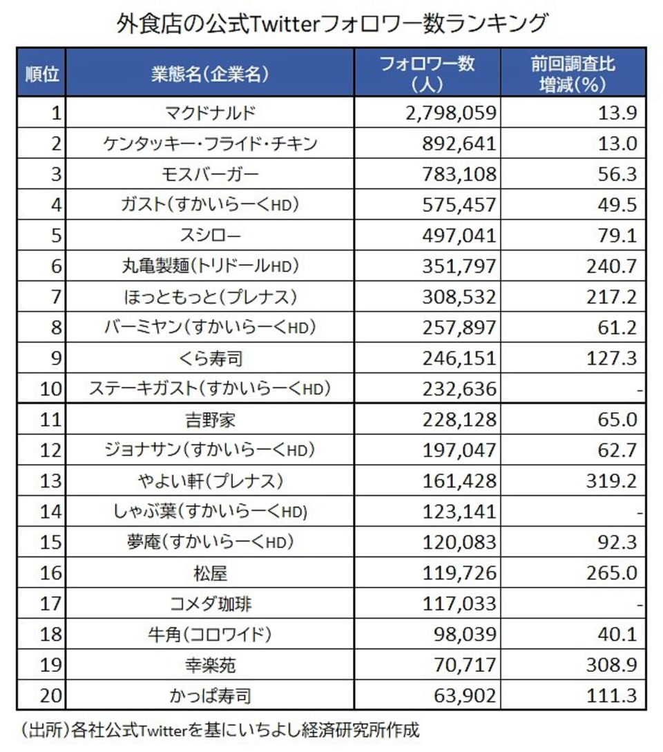 フォロワー数ランキングで分析 外食 の有望銘柄はどこ Money Plus